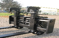 Containeraufnahme über Gabelaussparung. Mit hydraulischer Halterung für Auskippvorgang.