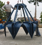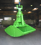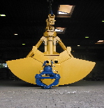 Zweischalen-Verladegreifer Schüttgut verladen für Schiffs- und Waggonver- und entladung. 1 bis 3 m³ Inhalt, 1000 - 2000 mm Breit. Verladegreifer auch mit niedriger Grabkurve - schont Schiffs- und Waggonboden. für Bagger bis 60 t